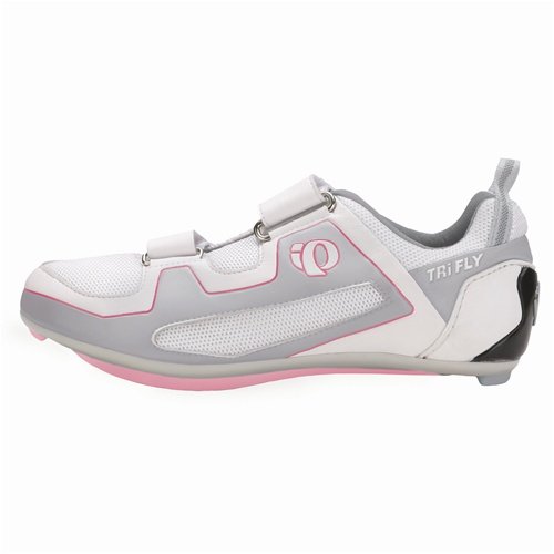 Pearl iZUMi Women's Tri Fly II Cycling Shoe Same amazing upper as the Tri Fly II Carbon with the addition of our new vented nylon sole. Minimal upper construction designed to minimize weight. Fully lined mesh upper for bare foot comfort. Highly abrasion resistant mesh forefoot area for maximum ventilation. Notched, reverse pull strap stands open for a quick transition. Women?s specific fit. Read more